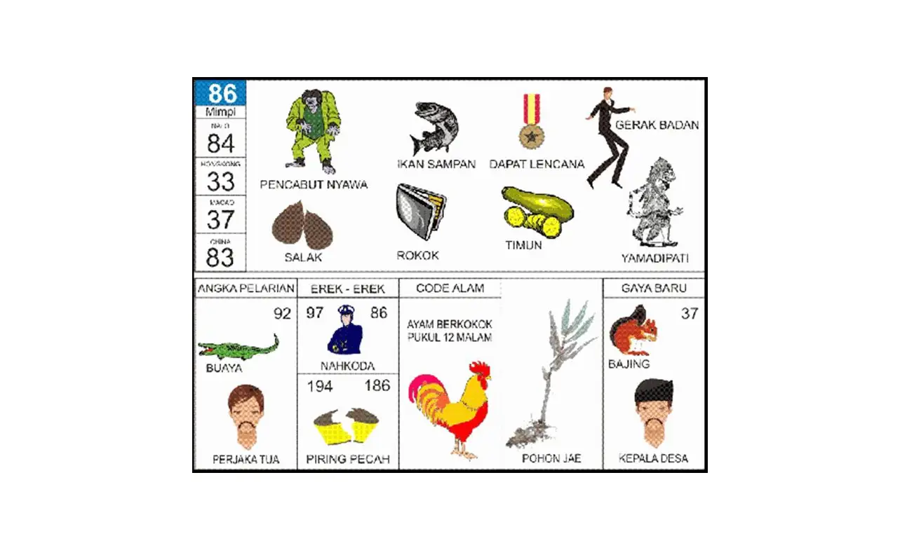 Dalam erek erek 86, terdapat berbagai simbol dan objek yang memiliki arti tersendiri. Berikut adalah beberapa simbol yang berhubungan dengan angka ini:| Simbol Utama | Arti / Makna |