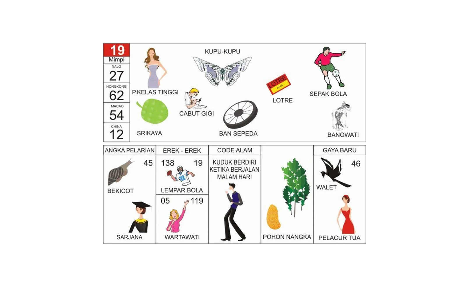 Berikut adalah tabel angka yang sering dikaitkan dengan mimpi angka 19:
