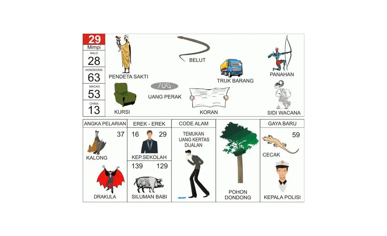 Berikut adalah tabel lengkap mimpi yang dikaitkan dengan angka 29 dan angka keberuntungannya dalam format 2D, 3D, dan 4D: