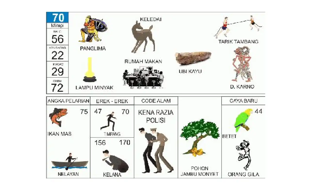 Berikut tabel angka main yang terkait dengan erek erek 70: