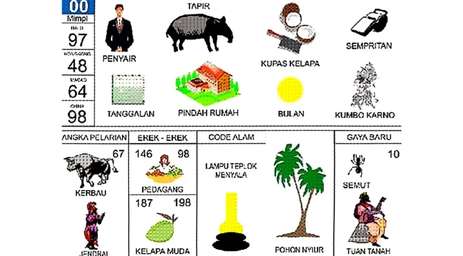 Baca juga simbol pendamping – seperti yang muncul dalam gambar: tapir, rumah, kelapa, dan lain-lain.