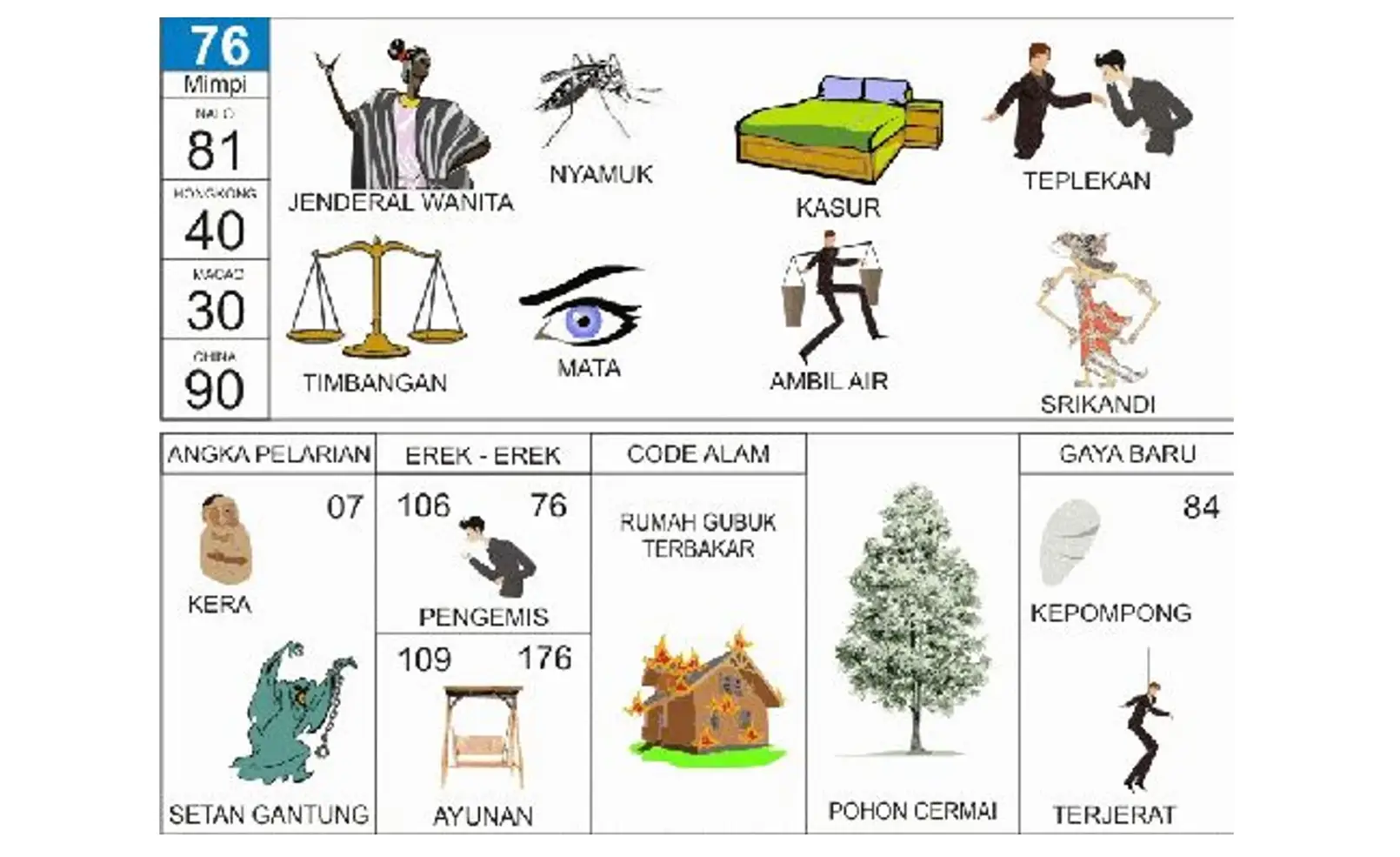 | Erek erek klasik | Simbol dan angka | Banyak referensi visual | Interpretasi bisa berbeda |