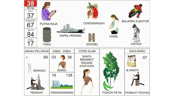 Ya, angka utamanya adalah 38, didukung simbol lain seperti 37, 67, dan 84.