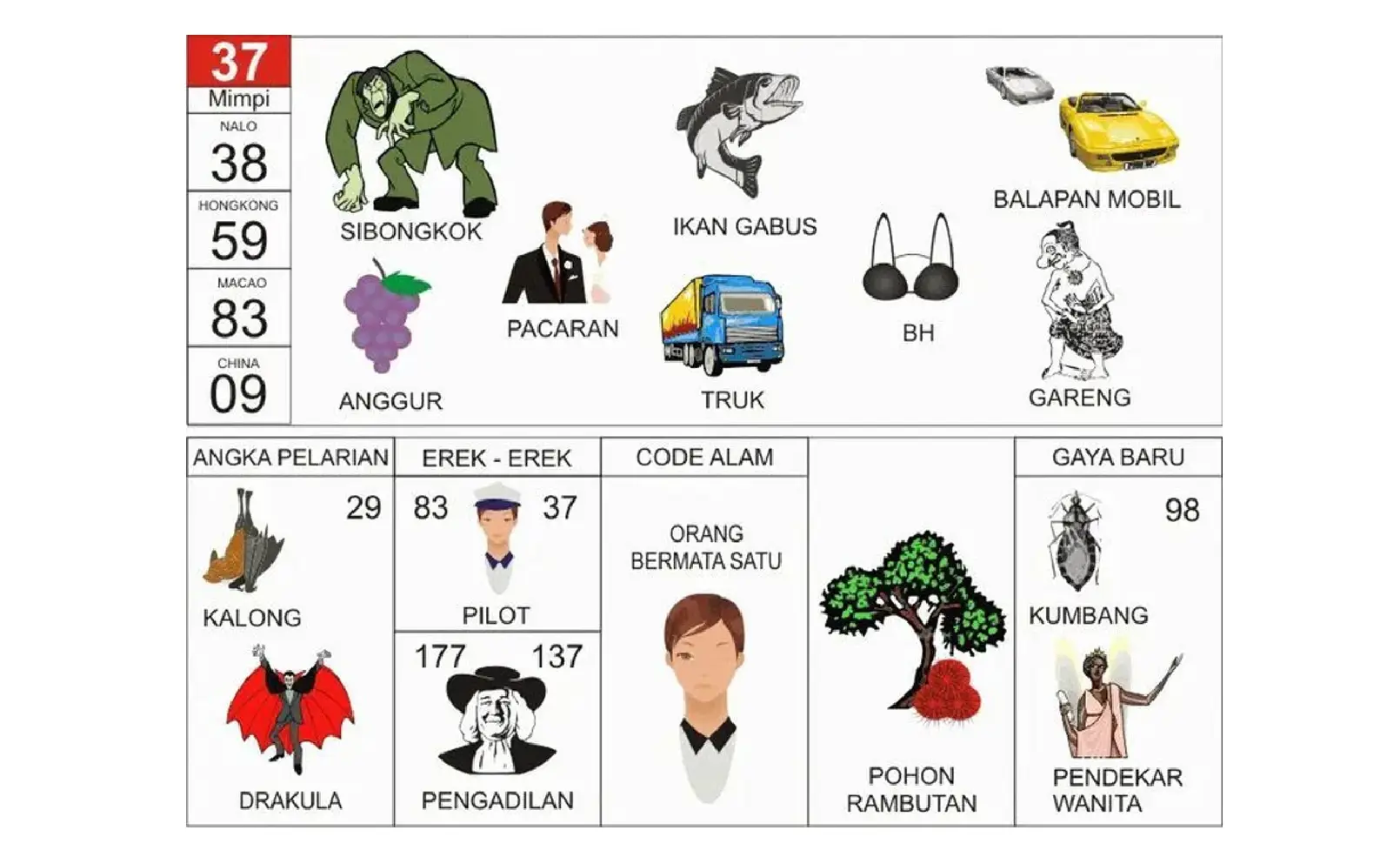 Simbol pendamping seperti anggur, ikan gabus, atau balapan mobil juga memperkuat arah tafsirnya.