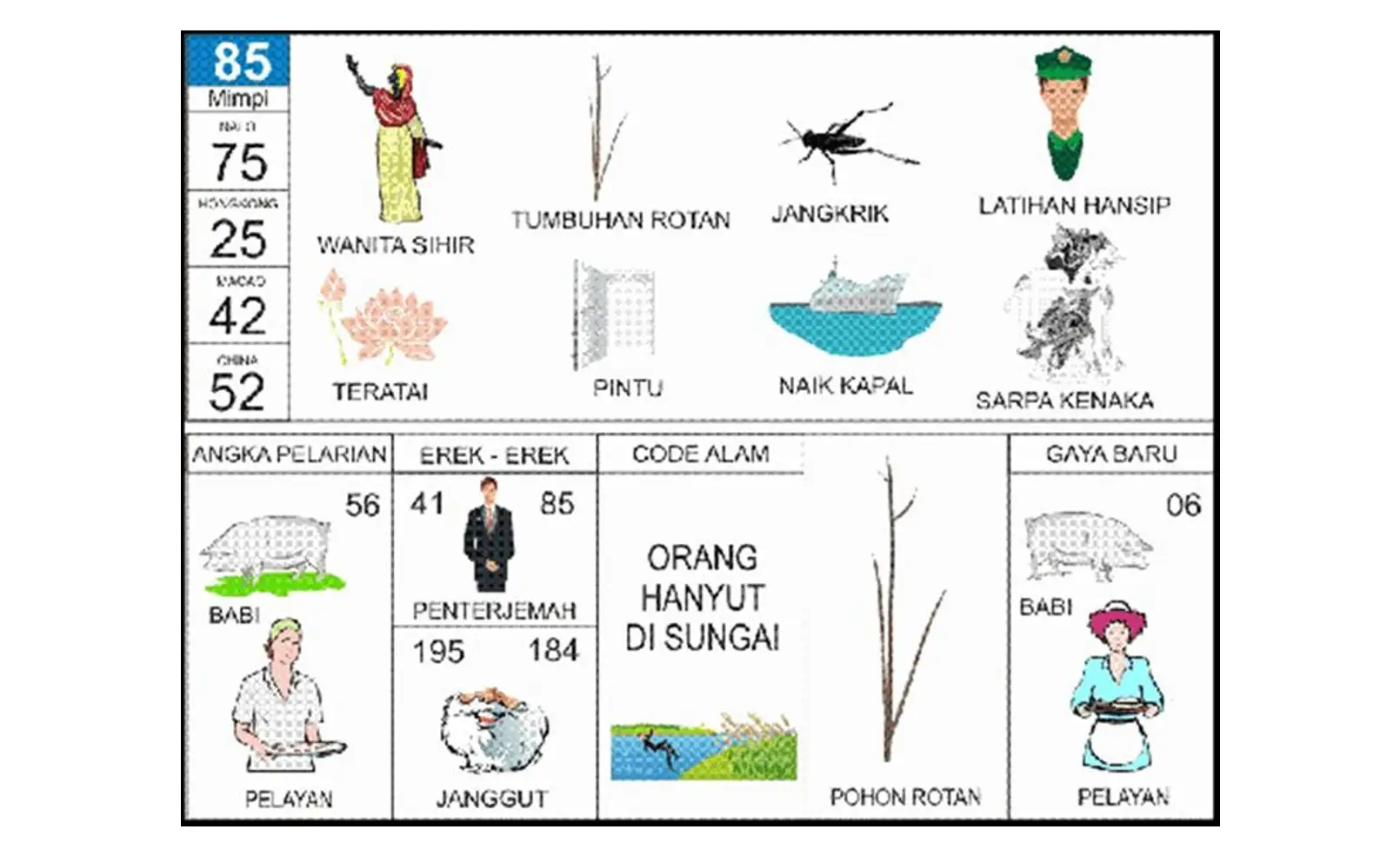 | Melihat sungai keruh | Adanya hambatan atau beban pikiran | 42 – 52 |